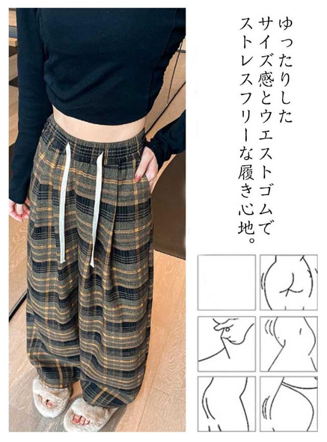 | さりげない起毛感がシーズンムードを盛り上げるチェック柄ワイドパンツ。 丈さと厚さも選べるのが嬉しい。 滑らかなウールタッチ素材でこれからの季節にピッタリのボトムです。 ゆったりしたサイズ感とウエストゴムでストレスフリーな履き心地。 ハイウエストなシルエットで脚長効果も期待できます。 落ち着いたチェック柄なのでアピールしすぎずさりげなくトレンドをONできるアイテムです。 ハイウエストなのでインでもアウトでも様々な着こなしを楽しめる優秀パンツ。 Tシャツ、スウェット、ニットなど、どんなトップスとも合い、秋冬のカジュアルスタイルに大活躍。 | |