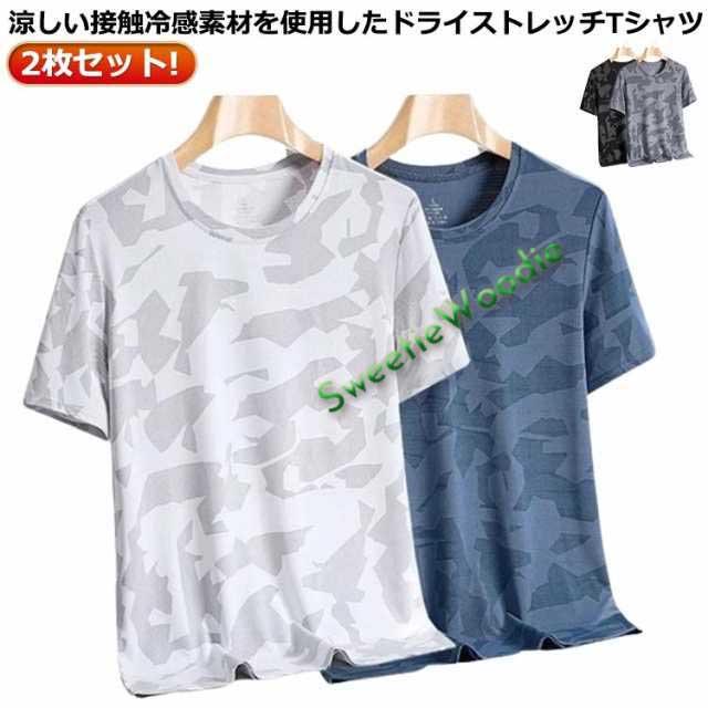 2枚セット tシャツ 夏 涼しい 半袖 迷彩tシャツ ドライ 着痩せ 2枚セット インナー メンズ 接触冷感 ストレッチ Uネック 消臭効果 吸水速乾 半袖Tシャツ uvカット 軽い 薄手 すっきり カットソー 迷彩柄 オーバーサイズ ティーシャツ 大人 カジュアル