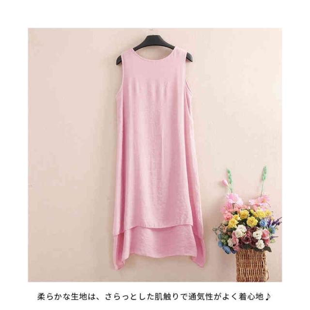 レディース ワンピース 春夏 綿麻ワンピース ノースリーブ ロングワンピース 着痩せ 通勤 通学 uネック コットン リネン 体型カバー キャミソール 大人 綺麗目 上品 20代 30代 40代 50代