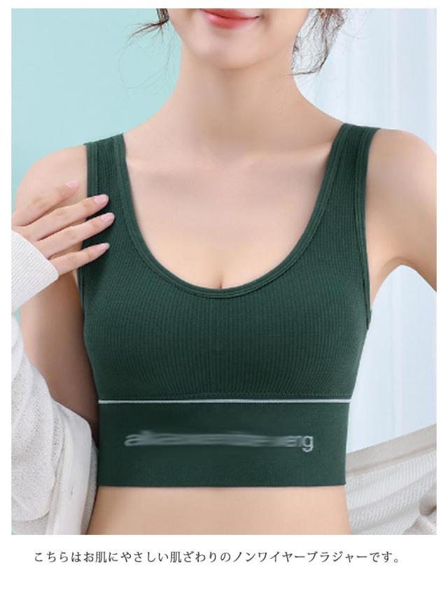 | 締め付け感が苦手な方や楽なブラを探している方におすすめ。 こちらはお肌にやさしい肌ざわりのノンワイヤーブラジャーです。 お肌に優しい 吸汗性が高く、汗をかいても蒸れにくいインナーだから快適な着心地。敏感肌でも安心です。 〇バストラインが綺麗に見えるカップ付き カップ付きのブラジャーだから、胸の形がきれいに見えます。他に装飾がないブラなので、Tシャツブラとしても使えます。 〇身体にフィットするアンダーゴムでずれない 体にぴったりフィットするアンダーゴムでブラジャーがズレにくい。動いた時のカップのズレや肩紐のズレが気になりません。 〇リラックスしたいときもスポーツをするときもオススメのノンワイヤーブラ ノンワイヤーだからワイヤーのしめつけやアンダーラインの食い込みがなく快適。太めのアンダーゴムは締めつけないからラクチンな着心地。ノンワイヤーですが、バストはしっかりとホールドしてくれるので安心。 おうちでリラックスするときも、スポーツをするときや子どものブラジャーとしても使えます。 〇シンプルなデザインだから様々なファッションに合わせやすい このブラジャーは無地のブラのアンダーゴムにだけ英字ロゴが入ったシンプルなデザインです。 | |