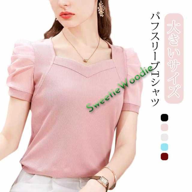 Tシャツ スクエアネック きれいめ レディース 半袖 シースルー袖 パフスリーブtシャツ バルーン袖 トップス 無地 通勤 通学 オフィスカジュアル おしゃれ 大人可愛い 大きいサイズ 夏