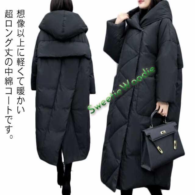ロングダウンコート レディース きれいめ ダウンジャケット ロングコート フェイクダウン 冬 厚手 モード系 羽織り アウター フード付き 長袖 あったか 防寒 おしゃれ 大きいサイズ 体型カバー ビッグシルエット 韓国 通勤 デイリー 普段使い