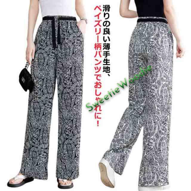 ウエストゴム ペイズリー柄 ペイズリー柄 柄パンツ イージーパンツ レディース リラックスワイドパンツ 花柄 総柄プリント ゆったり ポケット付き ストレッチ サラサラとろみ質感で楽ちん ペイズリー柄 カジュアル キレイめ 春 夏