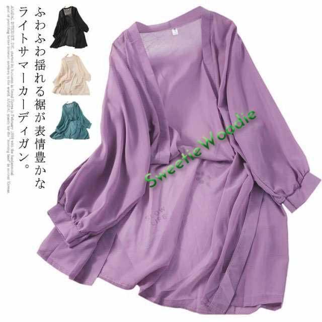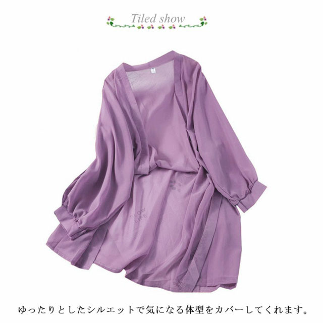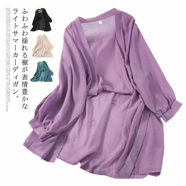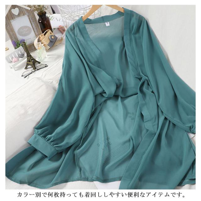 サマーカーディガン シフォン ドルマン カーディガン レディース 透け感 ロング丈 薄手 トッパー はおり 羽織 ガウン ゆったり 冷房対策 無地 長袖 通勤 通学 キレイめ トップス ビーチ リゾート お出かけ オシャレ 可愛い 送料無料
