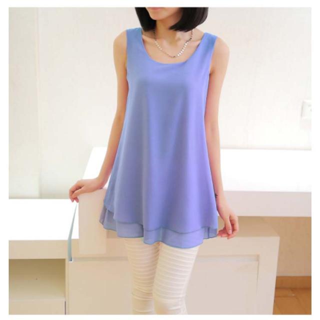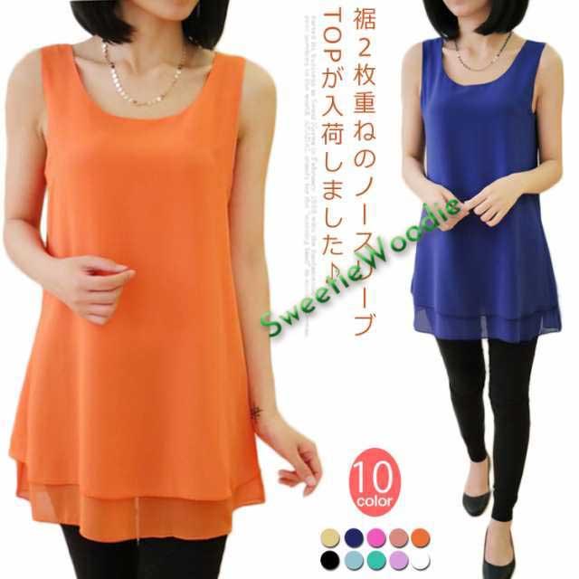 全10color×9size!ブラウス タンクトップ レディース 2枚重ね ロング丈 シフォンタンクトップ シフォン トップス ノースリーブ インナー 軽量 夏 オシャレ 大きいサイズ ゆったり