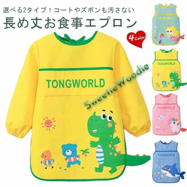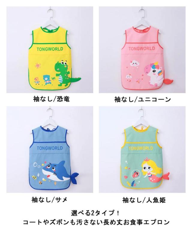 お食事エプロン ロング丈 プレウエア 防水 長袖 袖なし キッズ 離乳食 赤ちゃん 小学生 飲み食べこぼし 幼児 保育園 男の子 女の子 汚れ防止 子供 食事用エプロン 入園準備 入園グッズ ベビーエプロン 食べこぼし かわいい スモック 送料無料