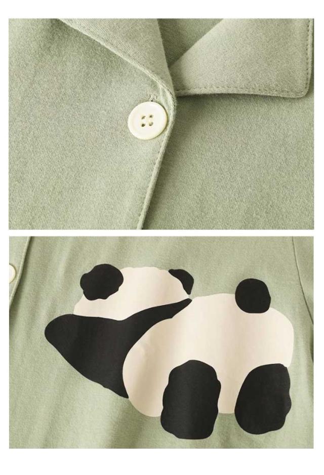 レディース 半袖 パジャマ メンズ パンダ柄 前開き ルームウェア 秋 部屋着 送料無料 おしゃれ テーラー襟 可愛い 上下セット 綿混 寝巻き 春 送料無料 ユニックセス