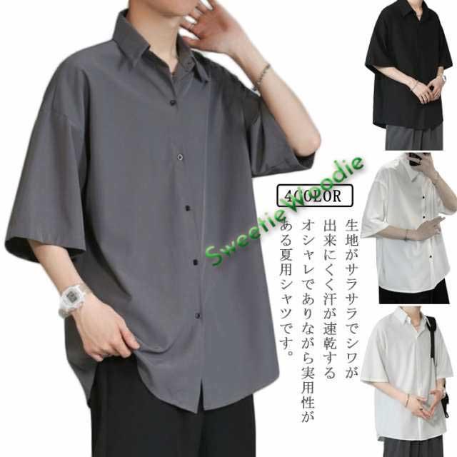 半袖シャツ メンズ シャツ 半袖 涼しい 接触冷感 オーバーサイズ シャツ ドルマン シワにならない ビッグシルエット オーバーサイズ 半袖シャツ ロングシャツ ビッグシャツ 無地 とろみ 父の日 ギフト ストリート アメカジ 送料無料