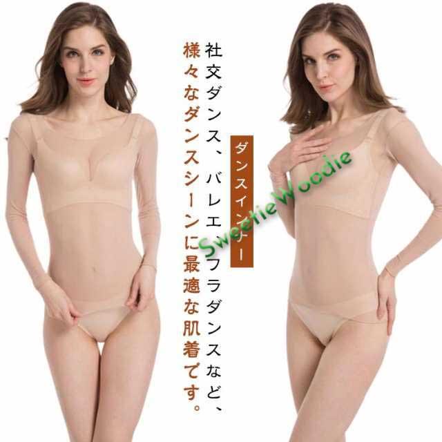 肌色 シースルー バレエ 長袖 ベージュ ダンスインナー ドレスインナー 下着 肌着 アームシェイプインナー シャツ ダンス衣装 コスプレ フラダンス 社交ダンス 薄い 薄手 トップス ボディファンデーション 衣装 社交ダンス ステージ