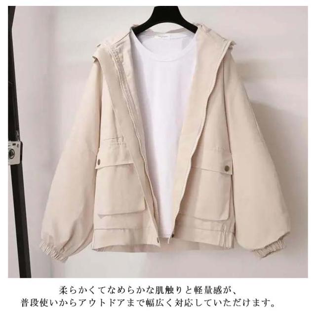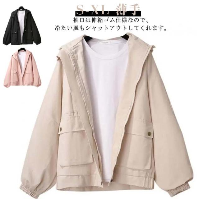 マウンテンパーカー レディース 春服 ショート丈 コート アウター 薄手 長袖 ジャケット マウンテンパーカー 春秋 防風 ジップパーカー ブルゾン 春コート 秋服 フード付き ゆったり おしゃれ カジュアル ジャンパー 体型隠し スプリングコート 大人 学生 無地 アウトドア