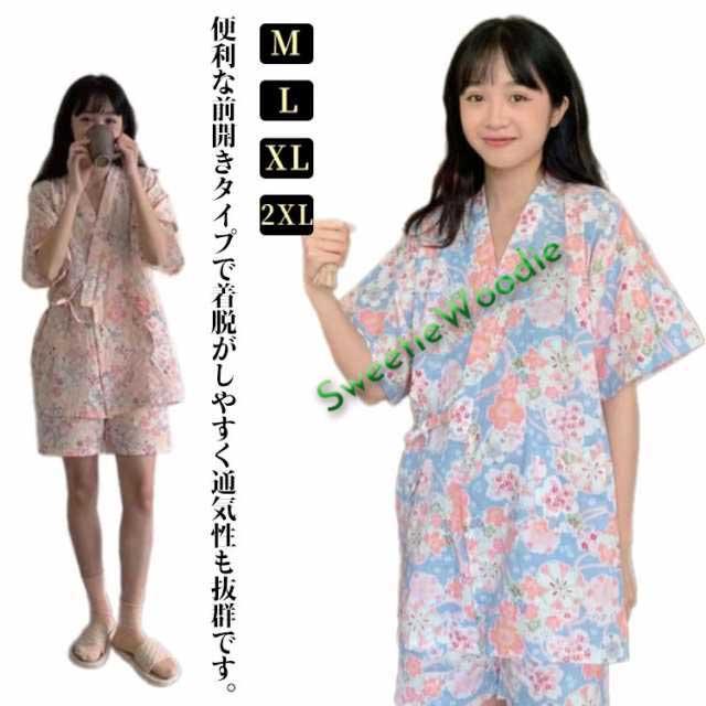 前開き 女性 レディース 浴衣 和風 上下セット パジャマ パジャマ 夏 ナイトウェア 寝巻き 通気性花柄 女性用 寝間着 ルームウェア 部屋着 ねまき お風呂 旅館 ホテル ホームウェア 甚平 春 秋 浴衣 小花柄 さくら