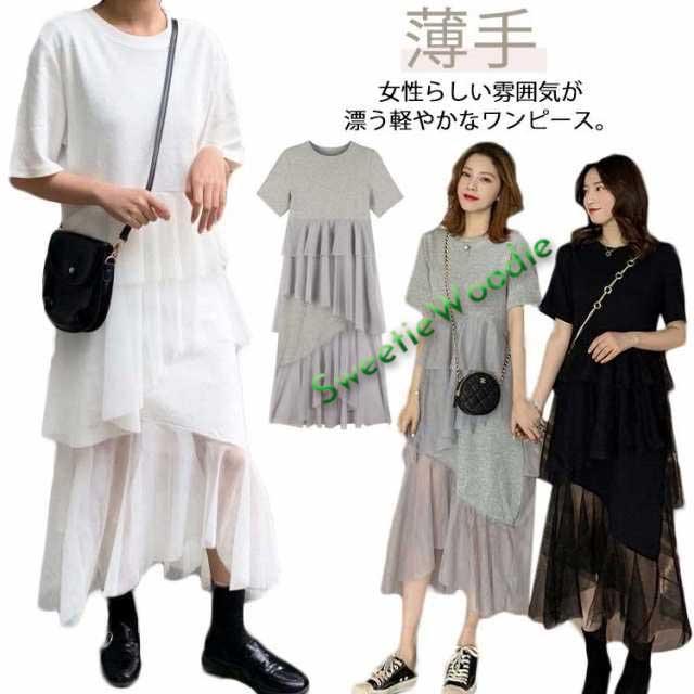 ロング丈 きれいめ マキシワンピース 半袖 ゆったり マキシワンピース マキシ丈 ワンピース 秋 チュール レディース ロング ワンピース 夏 薄手 体型カバー 柔らか シンプル 無地 カジュアル デイリー 20代 30代 40代 50代