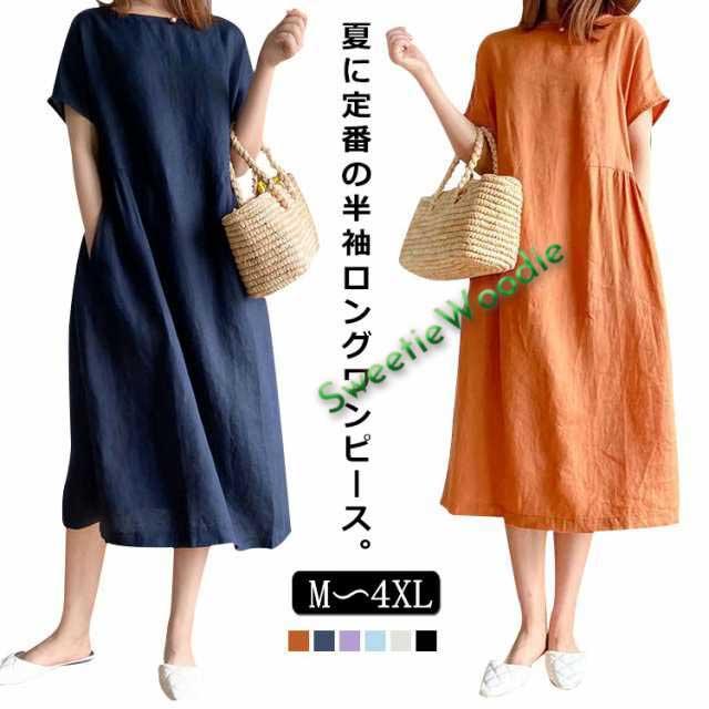 大きいサイズワンピース ナチュラル 服 綿素材 ロングワンピース コットン ロング ワンピ ゆったり 無地 マキシ 半袖 大きいサイズ Aライン 体型カバー ワンピース 春夏 30代 40代 50代 送料無料 かわいい 大人可愛い コットン