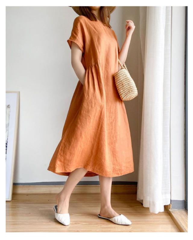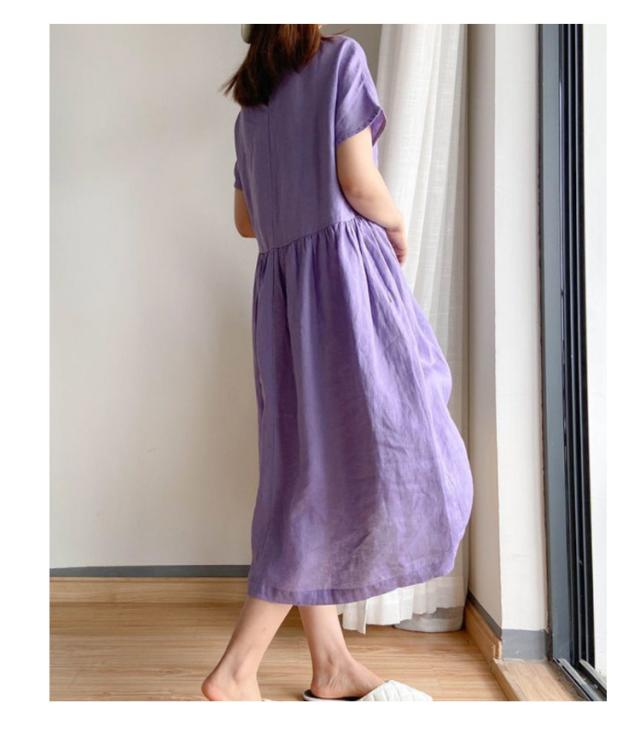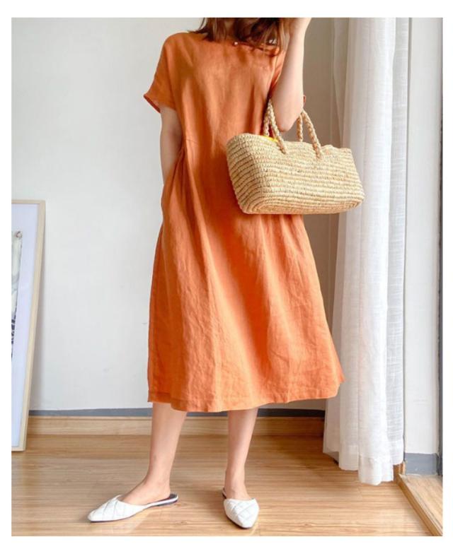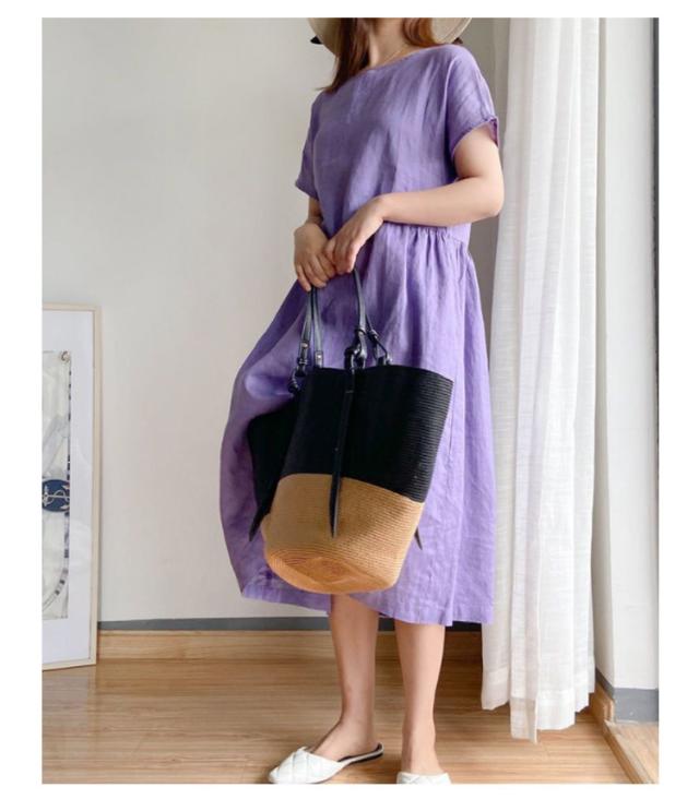 | 夏に定番の半袖ロングワンピース。 軽やかでさらりと着こなせる、滑らかかつ柔らかな綿素材を採用。 さらさらした肌ざわりで着心地も良い。 スッキリとしたランドネックデザインで、首元がつまっていないので重ねきもしやすいです。 スラッシュポケット付き、ハンカチや鍵など、ちょっとした物を入れるのに意外と便利です。 窮屈感ゼロの袖口と広めの袖は、気になる二の腕をカバーし、ゆったりと着ていただけます。 | |