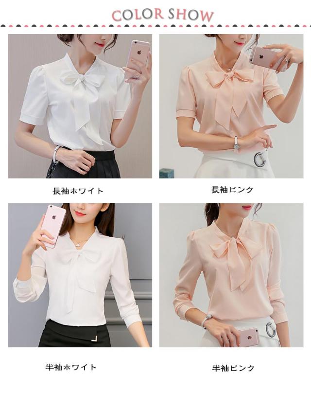 半袖 レディース シフォン 白 ボウタイブラウス シャツ ブラウス リボン ブラウス 無地 シャツブラウス 可愛い フォーマル カジュアル リボンタイ 長袖 オケーション きれいめ 春 夏 シフォン 母