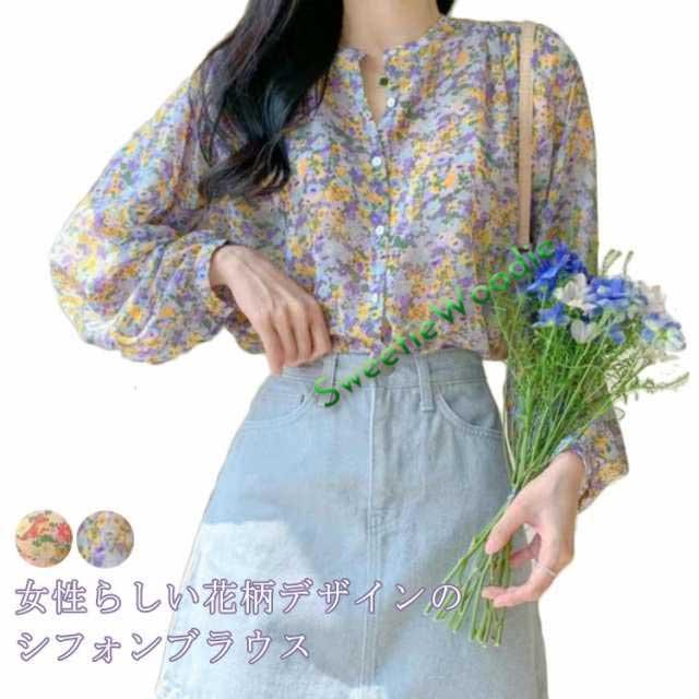 | 女性らしい花柄デザインのシフォンブラウス シフォン生地は通気性が良く、さわやかで快適な感じを与えて さらっと着られる滑らかな肌触りは季節の変わり目にぴったり。 ぽわんとした袖のシルエットは大人女子の魅力を惹き立てます カジュアルになりすぎず、大人可愛く組み合わせができる花柄ブラウスです | |