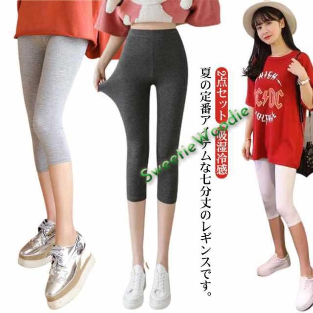 レギンス レディース 夏 夏用 薄手 涼しい 7分丈 2点セット UVカット 大きいサイズ 無地 涼しい 春 ボトムス 吸湿冷感 UVカット トレンカ 紫外線対策 冷房対策 スパッツ インナー ヨガ ルームウェア 七分丈 黒 ブラック 白 ヨガパンツ フィットネス スポーツ 送料無料