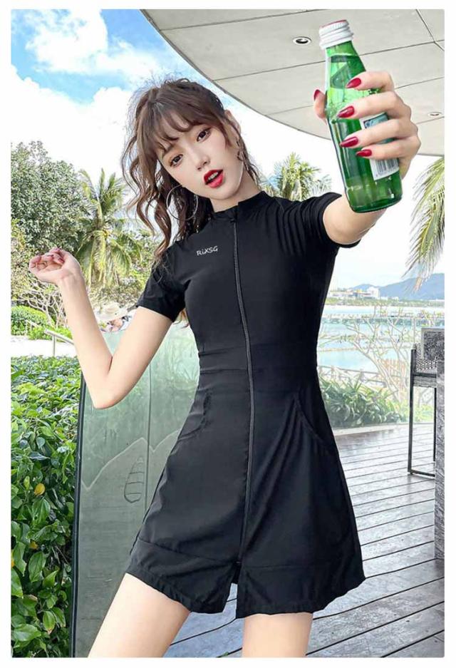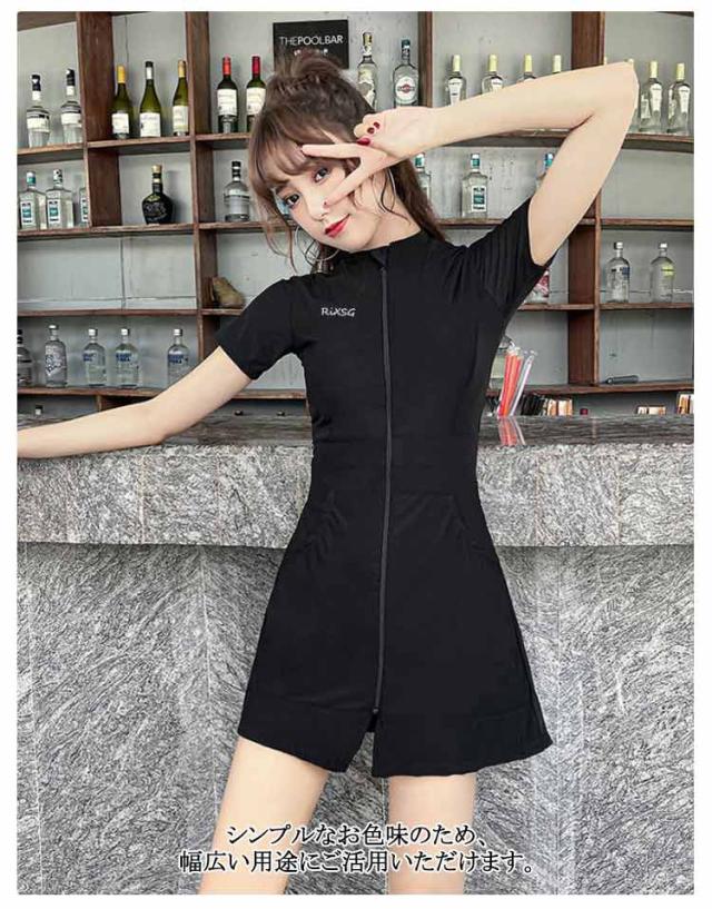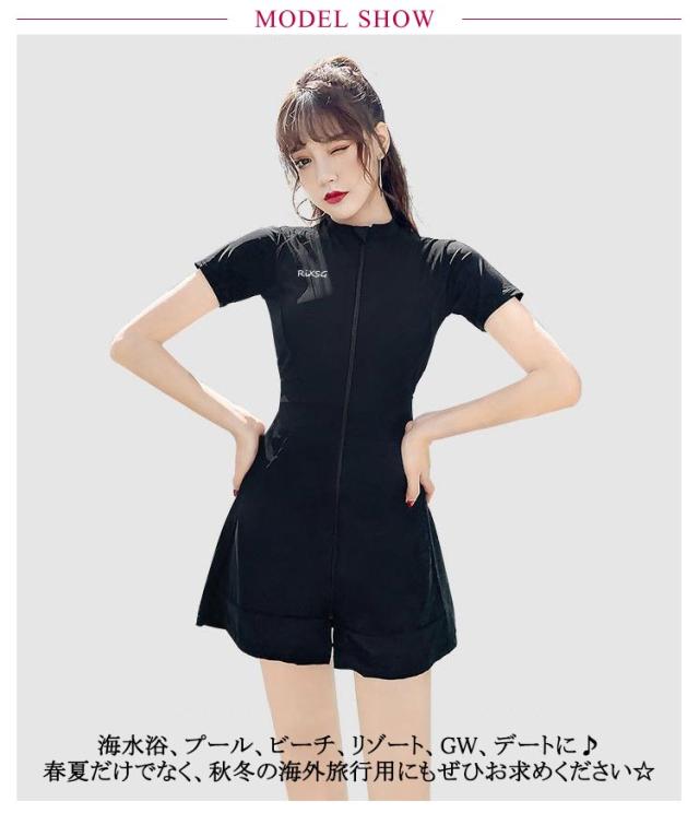半袖 レディース フィットネス水着 ラッシュガード 女性水着 ワンピース水着 UVカット 水着 水着 スポーティー水着 スイムウエア 前開き ファスナー ショートパンツ 水泳 ヨガ 体型カバー 運動用 スポーツ