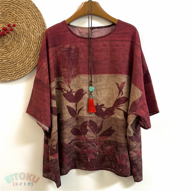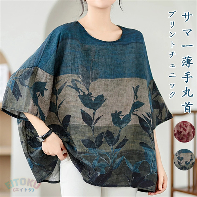 サマー薄手丸首プリントチュニック
