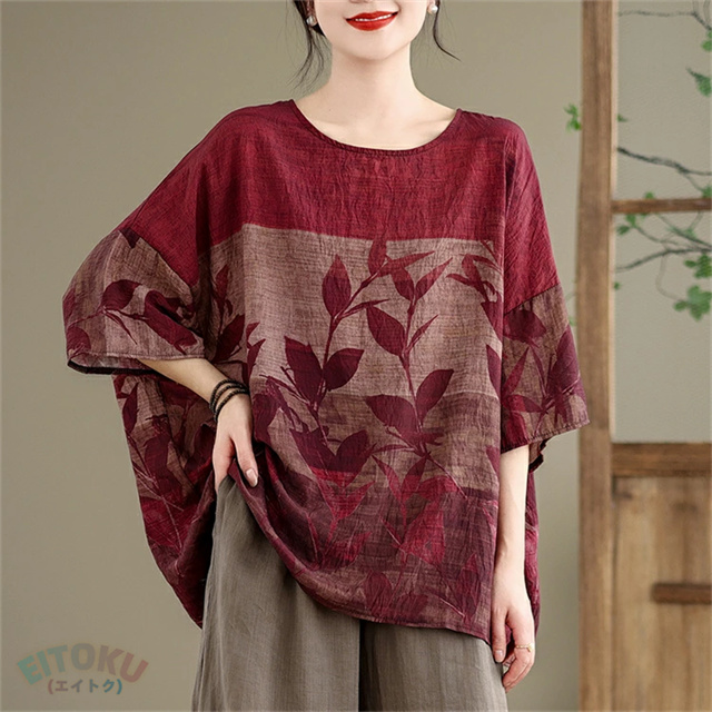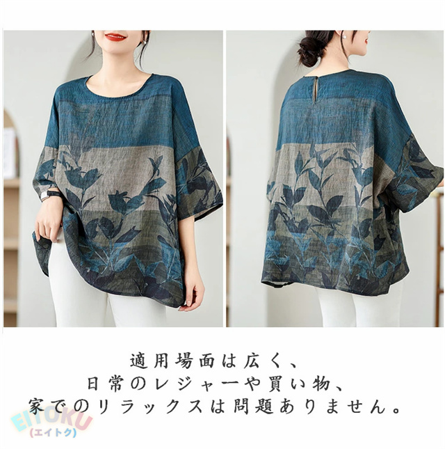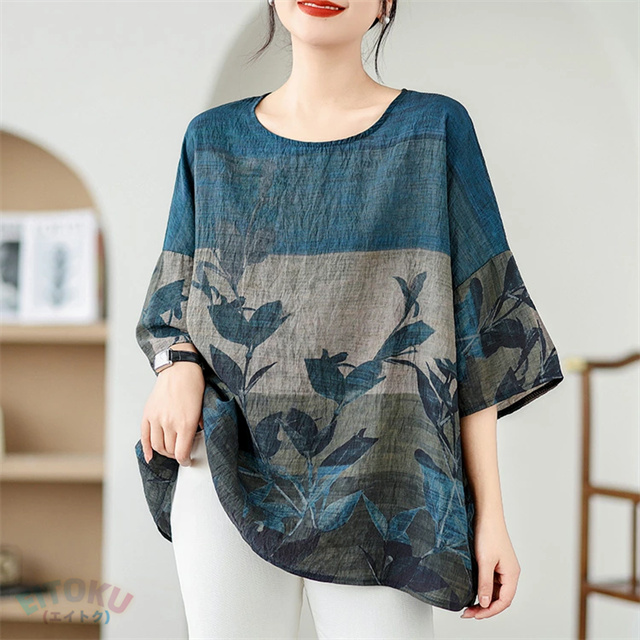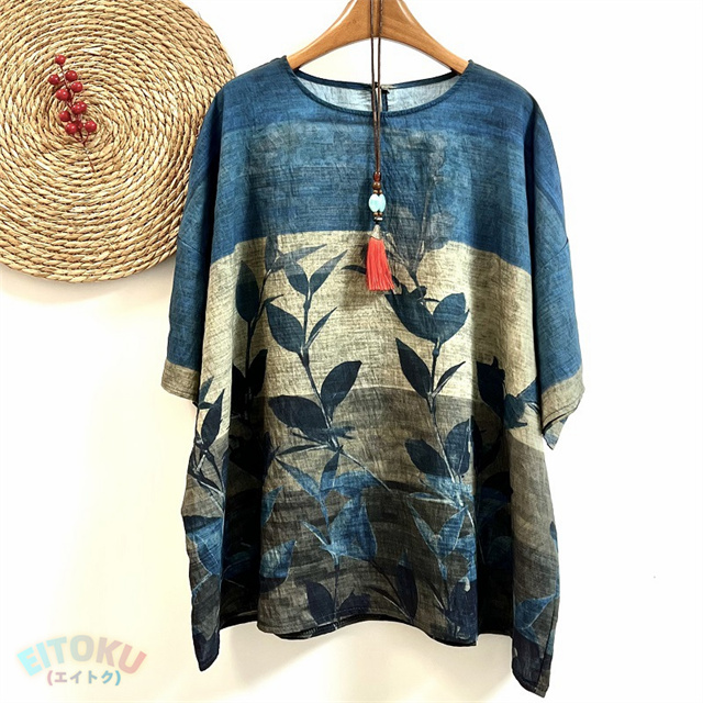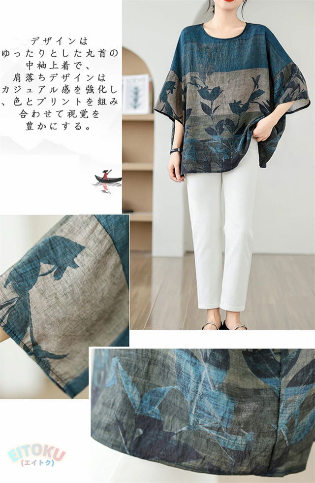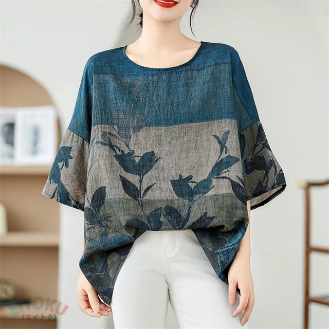 プリント チュニック 夏 レディース チュニックワンピース 半袖 植物柄 ワンピース クルーネック 綿 プリントチュニック ドロップショルダー 体型カバー 半袖チュニック 柔らかい 涼しい クルーネック 大きいサイズ 薄手 カジュアル おしゃれ