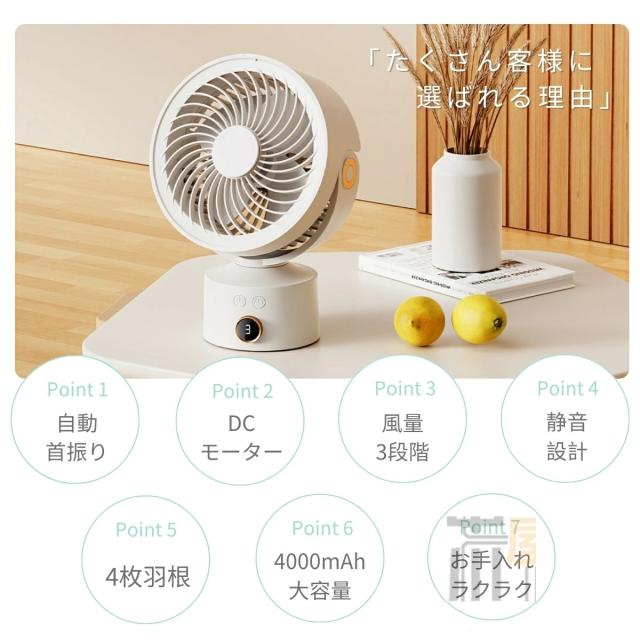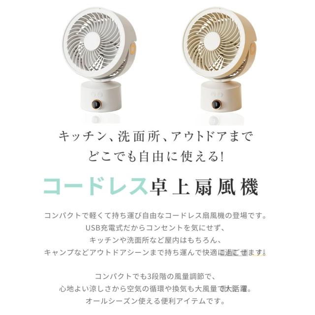 扇風機 充電式 静音 卓上 dcモーター ミニ扇風機 usb 左右首振り コンパクト ポータブル 軽量 節電 風量3段階 角度 風量 調整 コードレス 携帯 小型 おしゃれ 2025 暑さ対策 リビング オフィス キッチン 新生活 静か 寝室