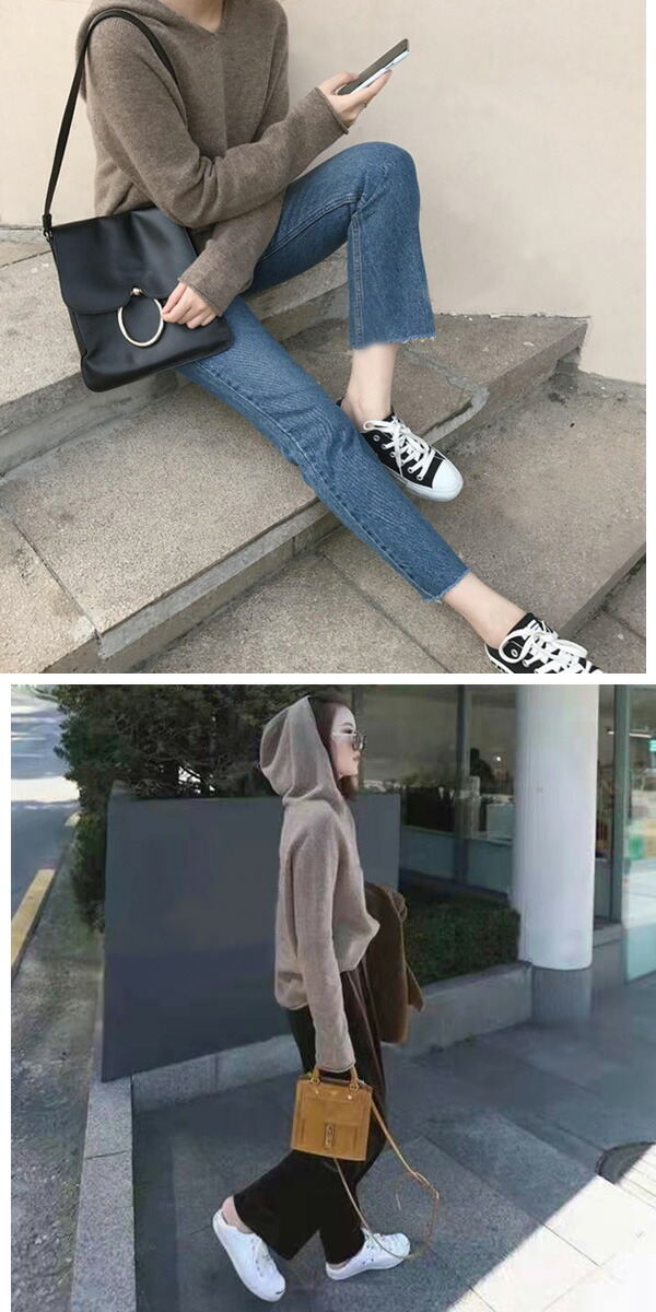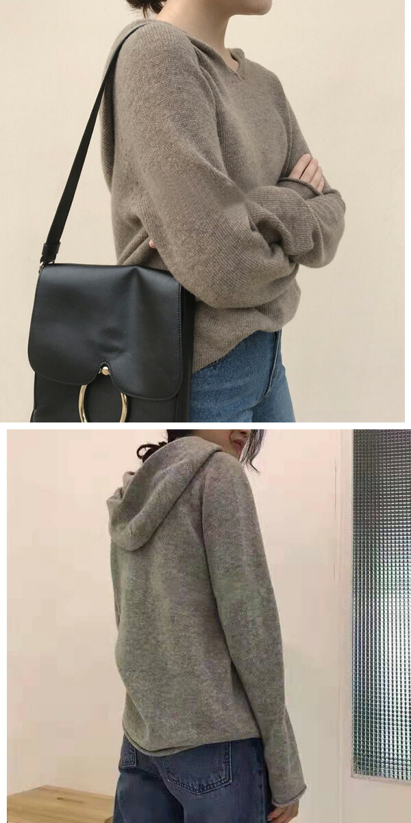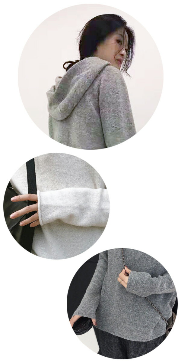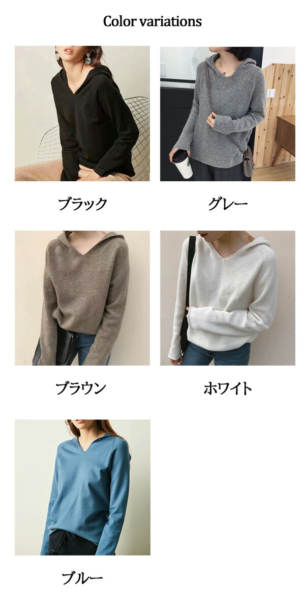 2B19 フード付きニット プルオーバ レディースファッション 新作 グレー ブラック ブラウン ホワイト ブルー