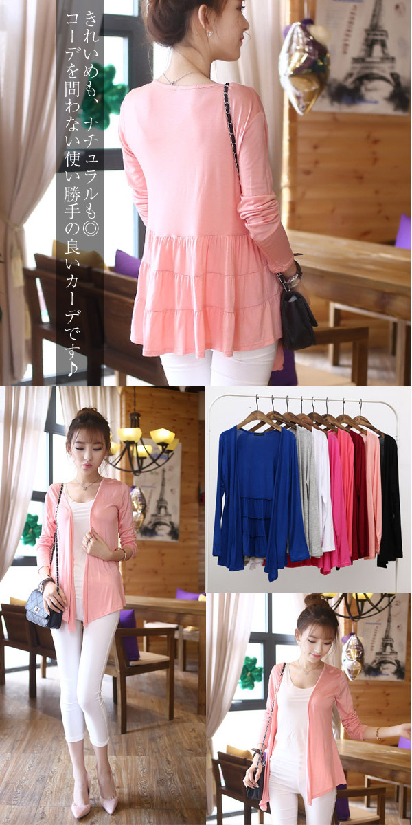 2A32 バックティアードトッパーカーディガン トップス カーデ ニット ティアード 羽織り モダール 長袖