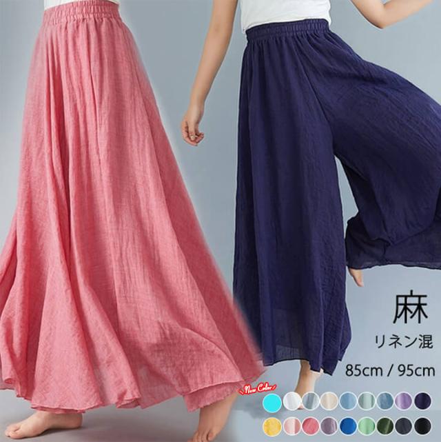綿混 ふんわりフレアマキシスカートリネン ワイドパンツ リネン スカート フレアスカート 麻 コーデ レディース ロングスカート マキシ丈 ロング丈 綿混素材 春夏