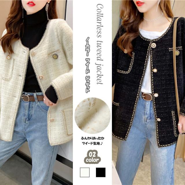 3B39ノーカラーツイードジャケット レディースファッション 豊富な品揃え ブラック ホワイト