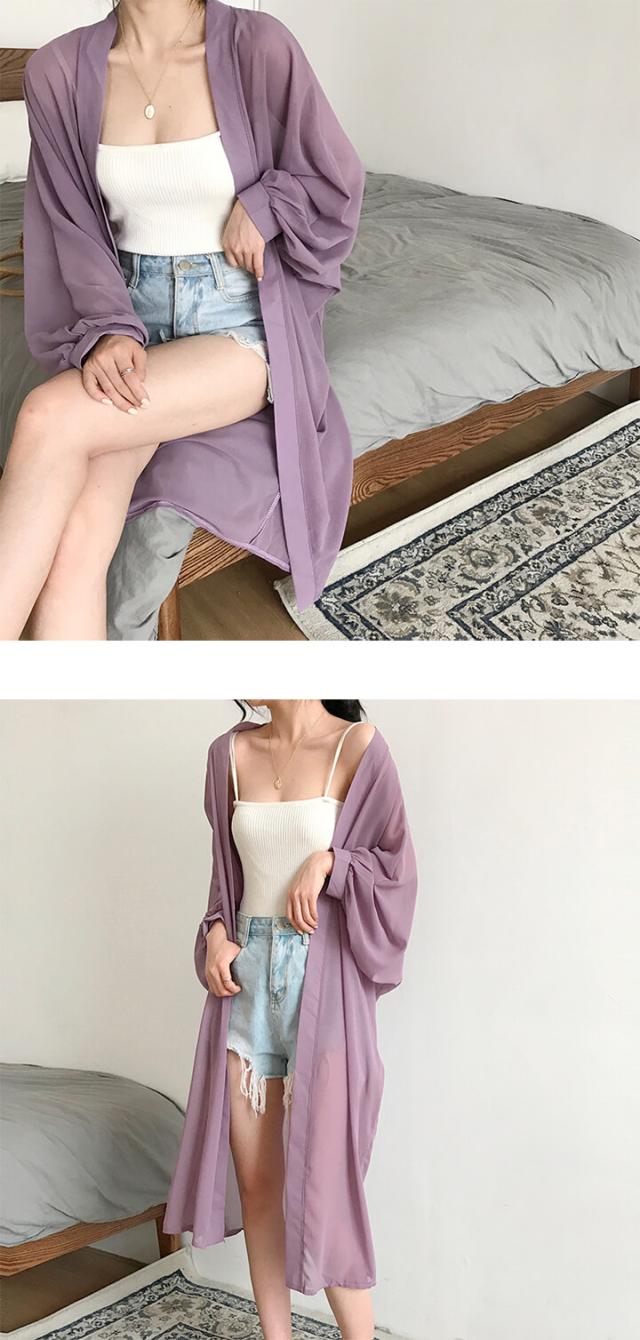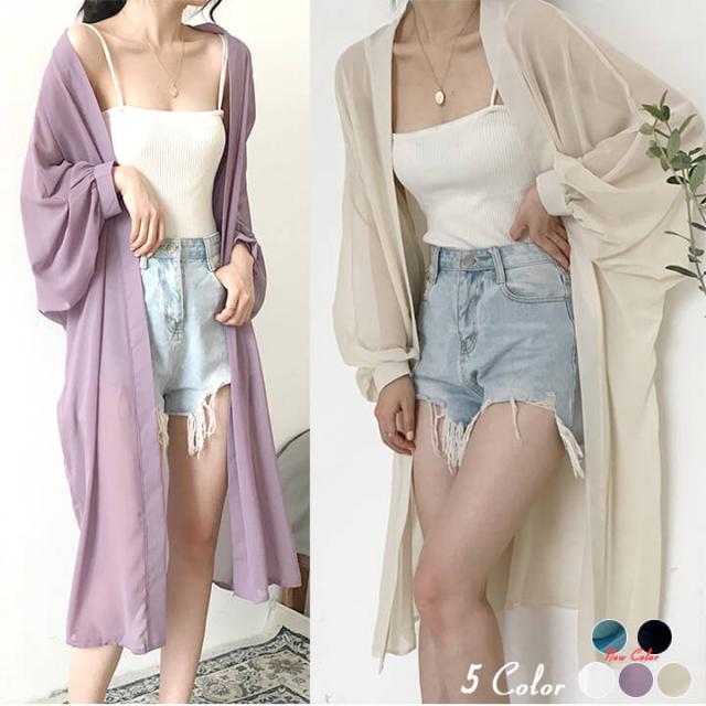 2A37 シアーロングカーディガン シ レディースファッション 新作 ホワイト パープル ベージュ ブルーグリーン ブラック