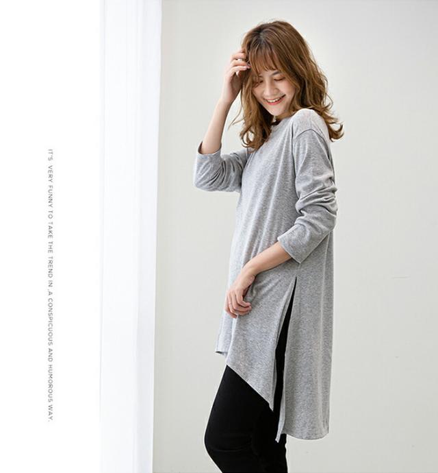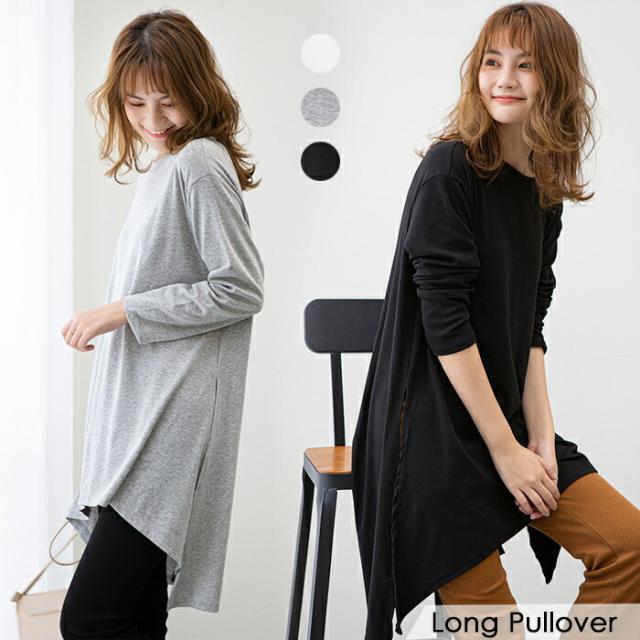 2B26 後ろ下がりがクール Aラインロング丈プルオーバー チュニック ロングTシャツ ロンT カットソー レディース 春夏 秋冬 ゆったり
