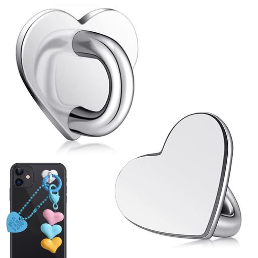キーリングハンガー スマホ スマホストラップ リング 2個入り ハート型/リボン型 シルバー/ローズゴールド 装着可能 携帯チェーン金具 ステンレス製 DIYジュエリーパーツ スマホアクセサ…