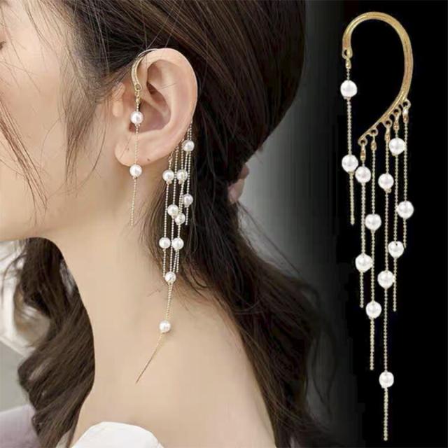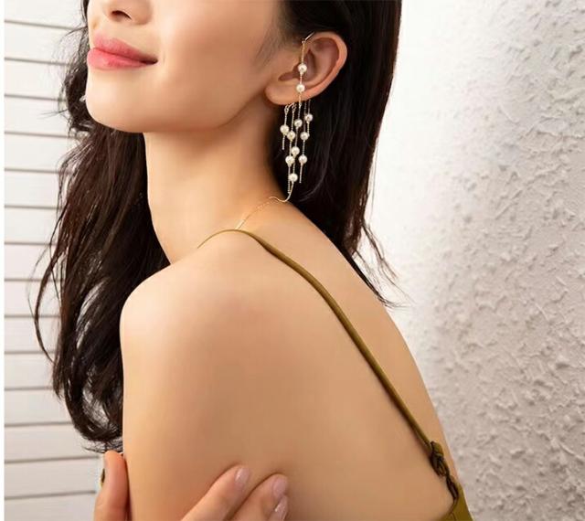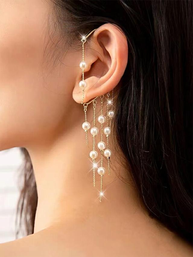 E-4耳飾り 6連パールイヤーカフ 片耳 ロングミスパール風 レディース 揺れる ゴールド チェーンピアス イヤーカ フ 大人 女性 耳飾り アクセサリー ギフト 誕生日プレゼント ジュエリー