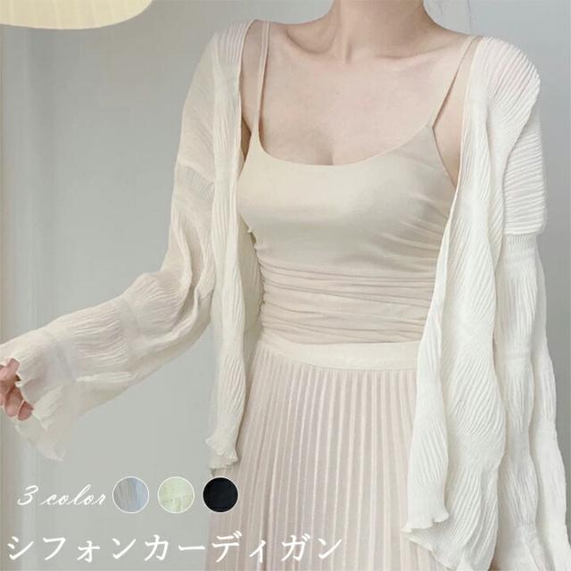 2A45 シフォン シャツカーディガン レディースファッション お買い得 ホワイト アイボリー ブラック