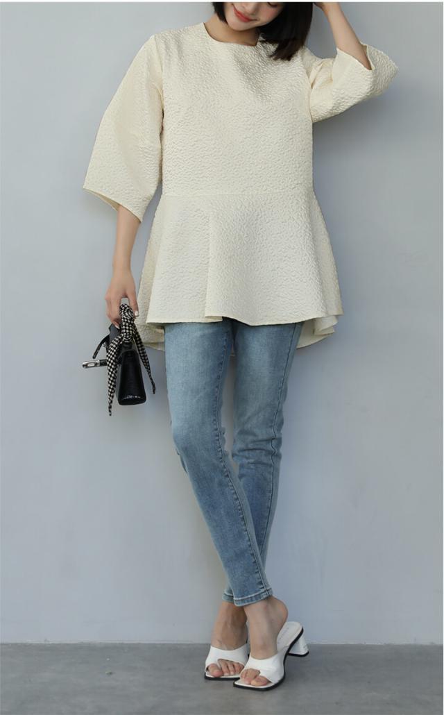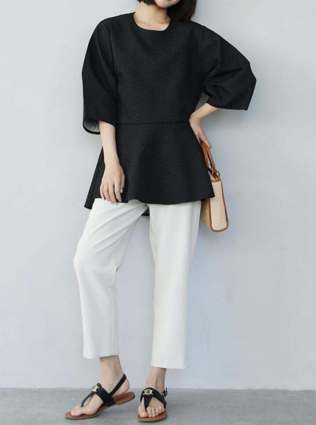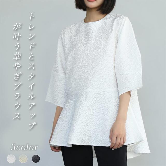ふくれジャガードペプラムトップス ジャ レディースファッション 人気 M L オフホワイト ベージュ ブラック