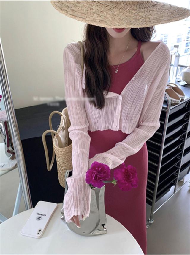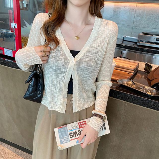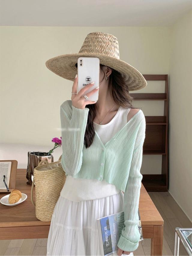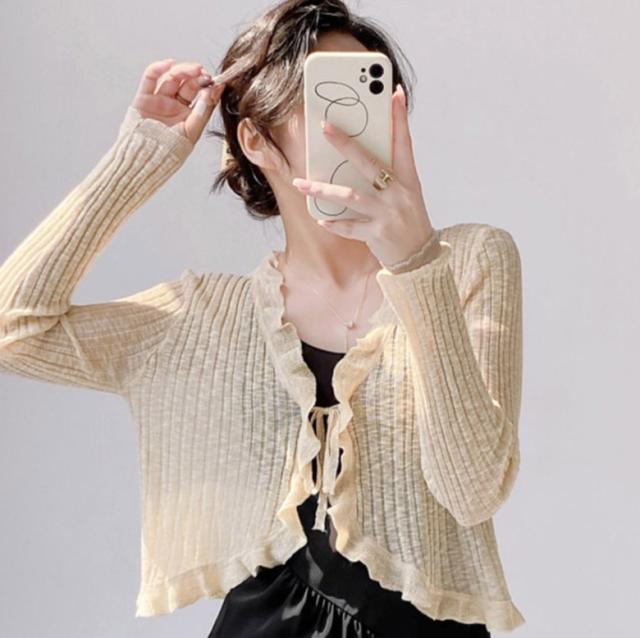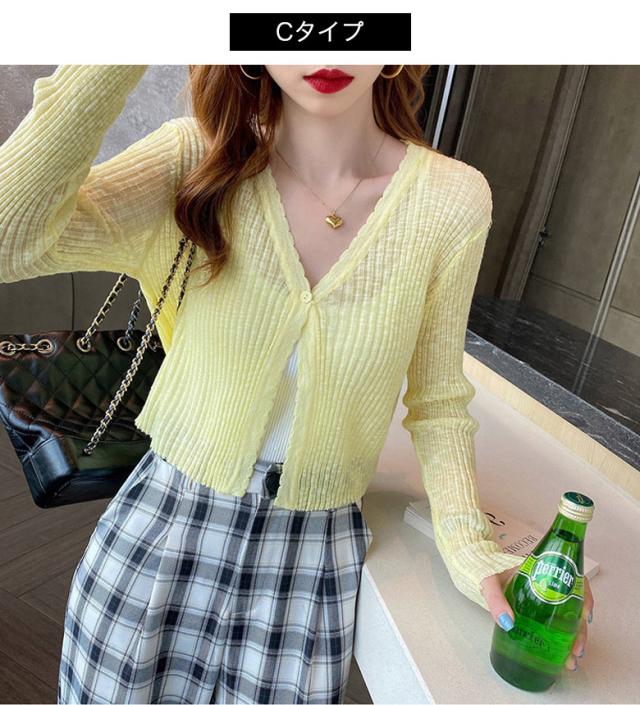 2B12ショート丈 カーディガン レディース 春 夏 秋 薄手 羽織り シルクニット 日差し避け 日焼け防止 UV対策 透け感 長袖カーディガン ニットカーディガン カジュアル 冷房対 ライトアウター