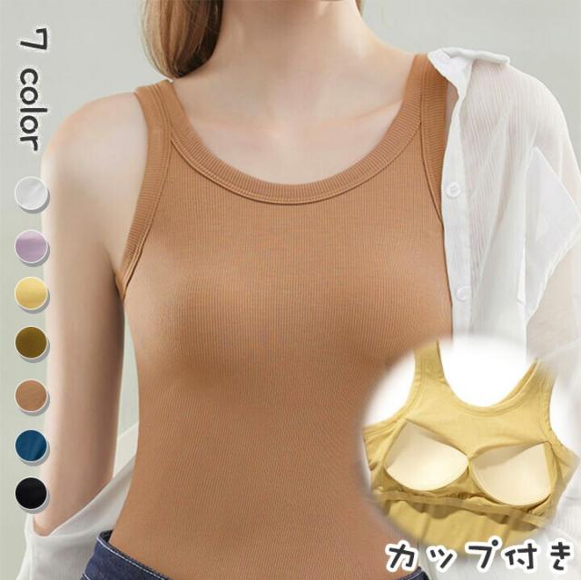 1R冷感 リブカップ付きキャミソール タンクトップ レディース リブ オールシーズン シンプルキャミソールカップ 締め付けない ノンワイヤー ブラトップ インナー