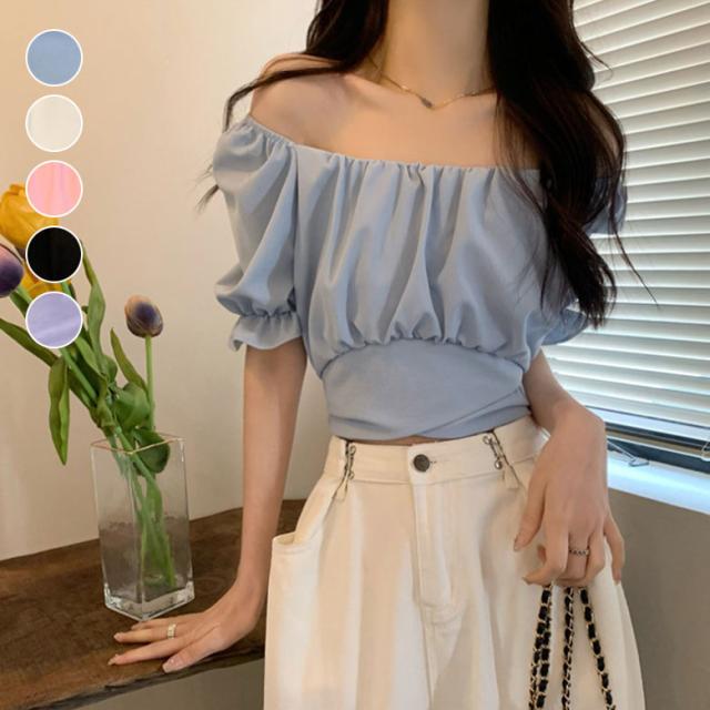 2A39 バックリボン ショート丈 ブラウス レディース 春 夏 トップス クロップド丈 へそ出し 肌見せ カジュアル 可愛い オシャレ シャツ シャツブラウス 韓国ファッション 半袖