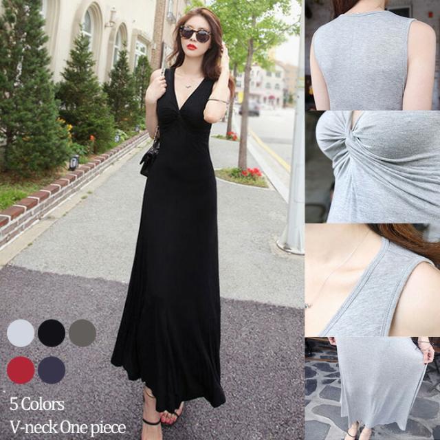 2A50 Vネックマキシワンピース ロ ワンピース 続々登場 ライトグレー ダークグレー レッド