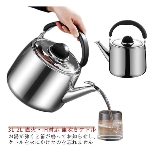 たっぷり 3リットル ih 2L 広口 ケトル 大容量 ステンレス ガス火対応 やかん 広口タイプ ステンレス やかん 湯沸かし 2リットル 3L ヤカン 笛吹 お湯 沸かす 使いやすい 錆 新生活