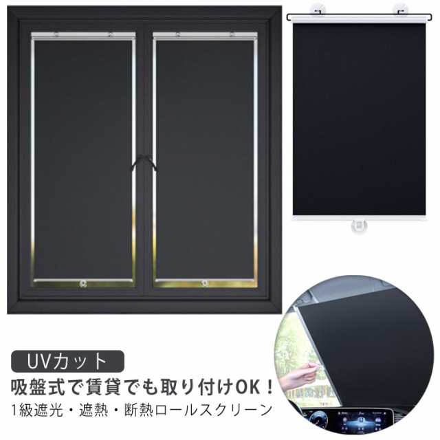 断熱 ロールカーテン 吸盤付き UVカット 遮光 遮熱 車用カーテン 遮光カーテン プライバシー保護 真っ黒 ロールスクリーン 間仕切り 日差し 西日対策 ロールスクリーン 穴あけ不要 防寒 ブラック