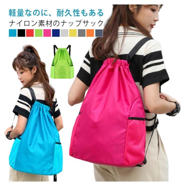 スポーツバッグ ナイロン 防水 女の子 レディース リュックサック ジム バッグ リュック 撥水 プールバッグ 子供 大きめ アウトドア 大人 巾着袋 ナップザック 旅行 スポーツ 軽量 男の子 メンズ 通学 通勤 ボール入れ かばん 鞄 シューズケース ナップザック 無地