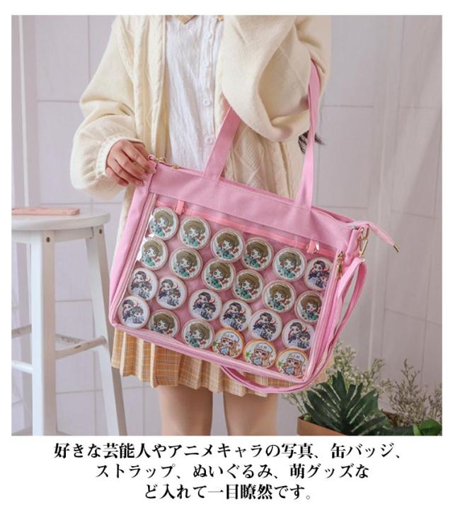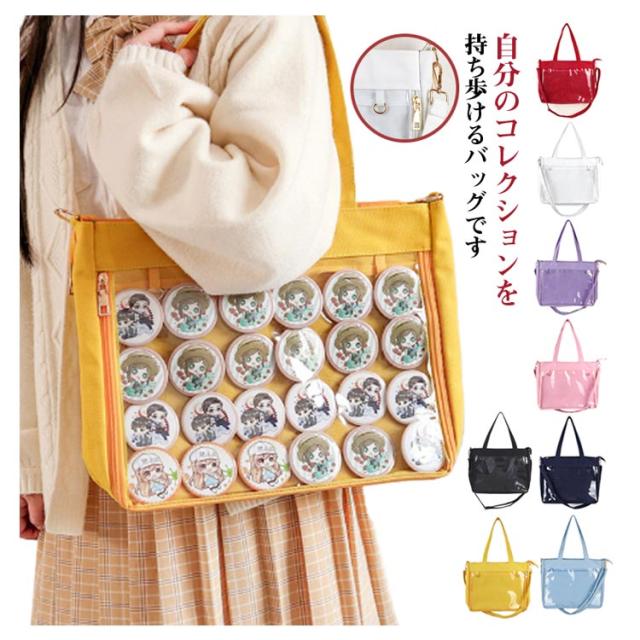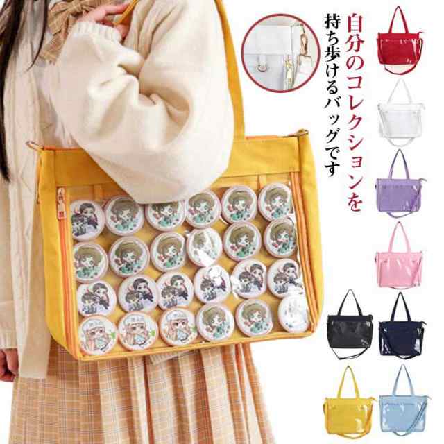 | 自分のコレクションを持ち歩けるバッグです。マイコレクションをオシャレに持ち歩きましょ♪バッグの透明ポケットで見せたいアイテムで自分の好みにアレンジできま バッグの片面の透明ポケットで見せたいアイテムで自分の好みにアレンジできます。 好きな芸能人やアニメキャラの写真、缶バッジ、ストラップ、ぬいぐるみ、萌グッズなど入れて一目瞭然です。 | |