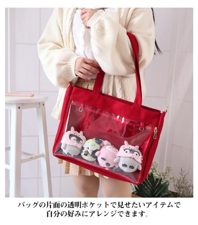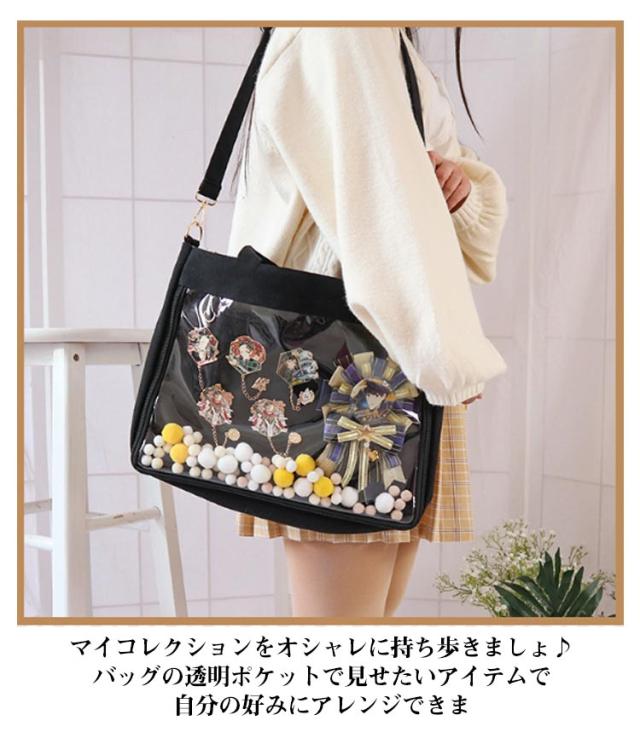 クリアバッグ 軽量 ショルダーバッグ 透明 痛バ ビニール 透明ポケット ビニール キャンバス地 痛バ 痛バッグ ガールズ 全8色 透明 通勤 痛バッグ キャンバス地 トートバッグ ビニール 透明ポケット A4 可愛い 大容量 通学