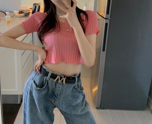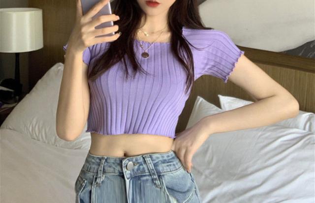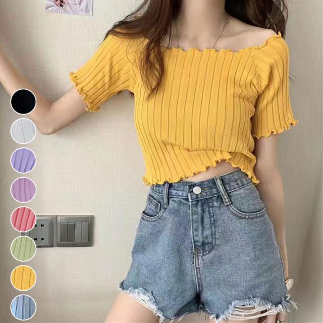 2A1 ショート丈 半袖 ニット セーター レディース 春 夏 秋 トップス ショートセーター ショート ニットセーター シンプル カジュアル オシャレ スリムフィット 半袖ニット 半袖セー きれいめ
