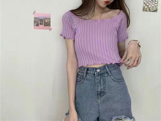 2A1 ショート丈 半袖 ニット セー レディースファッション お得なセール ブラック ホワイト パープル ライトパープル ピンク グリーン イエロー ブルー