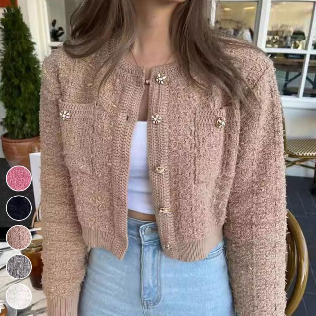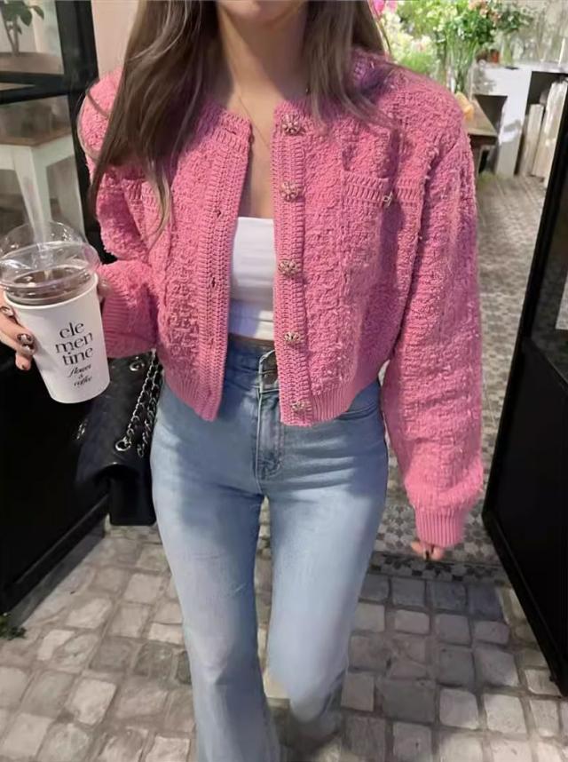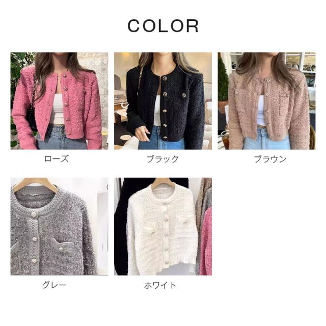 ショート丈 ニット ジャケット レディ コート ジャケット 豊富 ローズ ブラック ブラウン グレー ホワイト