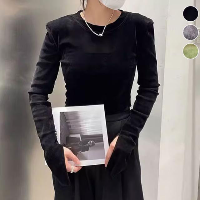 3B32 ベロア ロング Tシャツ レディース 秋 冬 トップス ロンT ベロアシャツ 袖スリット 長袖 スリットスリーブ ラウンドネック きれいめ 長袖Tシャツ プルオーバー 韓国ファッシ シンプル