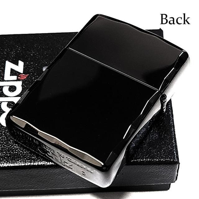 重みのあるアーマーベースに、上品なイオンブラックを纏ったコーナー彫刻モデルZIPPOです。