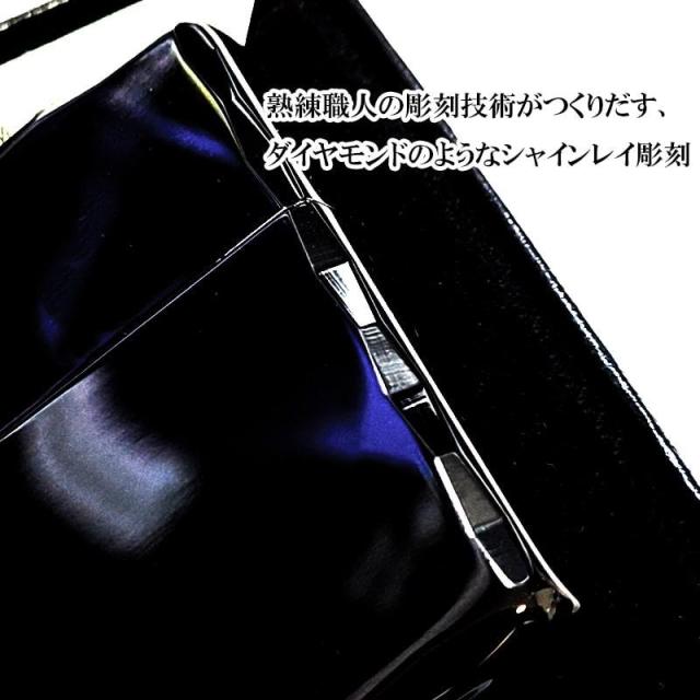 熟練職人の手によって両面に施されたシャインレイ彫刻が、ダイヤモンドのように光の反射を放つ高級感のある仕上がり。